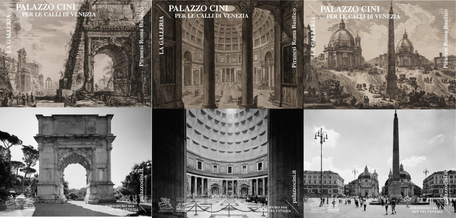 Fino alla riapertura della casa-museo (che fu dimora di Vittorio Cini), il progetto mostrerà ai passanti le riproduzioni di alcuni dei luoghi più simbolici della Città Eterna. In particolare, tra le calle di Venezia, si potranno ammirare le stampe originali realizzate nel ‘700 dal famoso incisore, oltre alle splendide vedute di Roma realizzate dal grande fotografo milanese Gabriele Basilico. Queste ultime sono state eseguite adottando le stesse angolazioni delle incisioni piranesiane su commissione della Cini nel 2010.