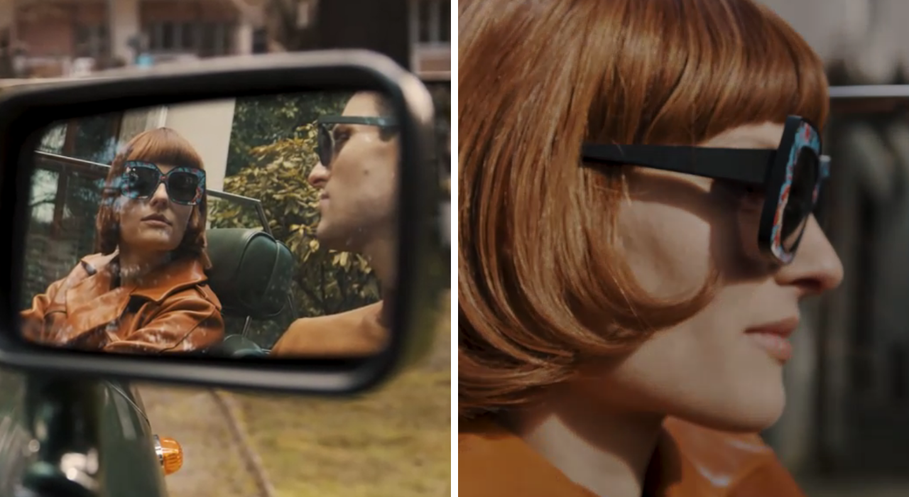 La particolarità di questi occhiali da sole sta anche nella loro realizzazione. La parola chiave è sostenibilità, per cui il materiale green utilizzato è quello che in genere serve per fabbricare suole per calzature; in questo caso è stato trasformato in un tessuto conciato di vegetale e lavorato sartorialmente, a cui si aggiunge un delizioso print floreale.