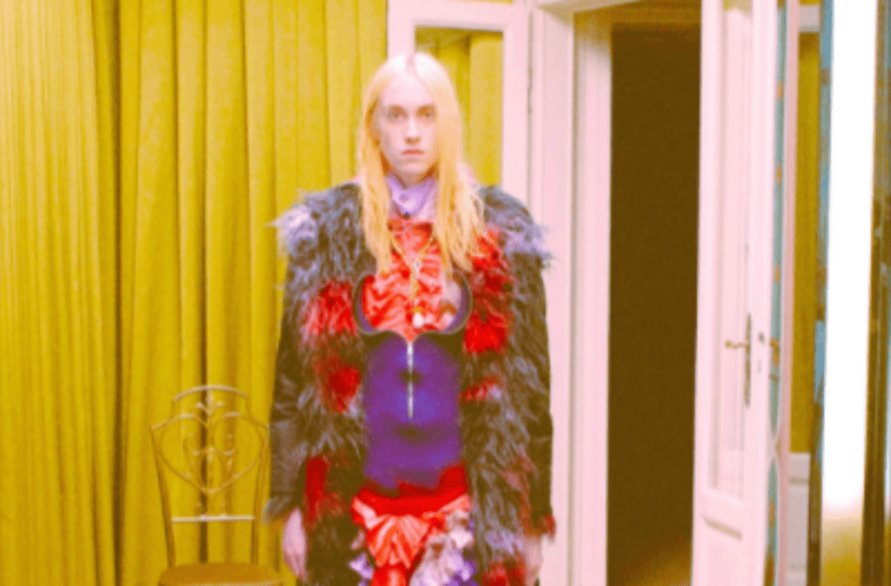 Le camicie si fanno corsetti, i trench assumono la sembianze di una gonna a torta, le felpe sono oversize, i piumini sono morbide stole. Le cerniere sono ricoperte di balze e formano jabot Ottocenteschi in versione punk. Ci sono pellicce eco, pantaloni in knitwear e maglioni realizzati in crochet. La ricerca del decoro è un evoluzione portata avanti con Tom Binns con oggetti di recupero e creativi bricolage. La collezione Marni Autunno/Inverno 2021- 2022 anela ad una forte e immediata espressione personale, in maniera intima, ma allo stesso tempo spontanea. Francesco Risso si conferma essere, collezione dopo collezione, un couturier stravagante che persegue la sua visione surreale della moda, senza condizionamento alcuno. Una voce, quindi, fuori dal coro.