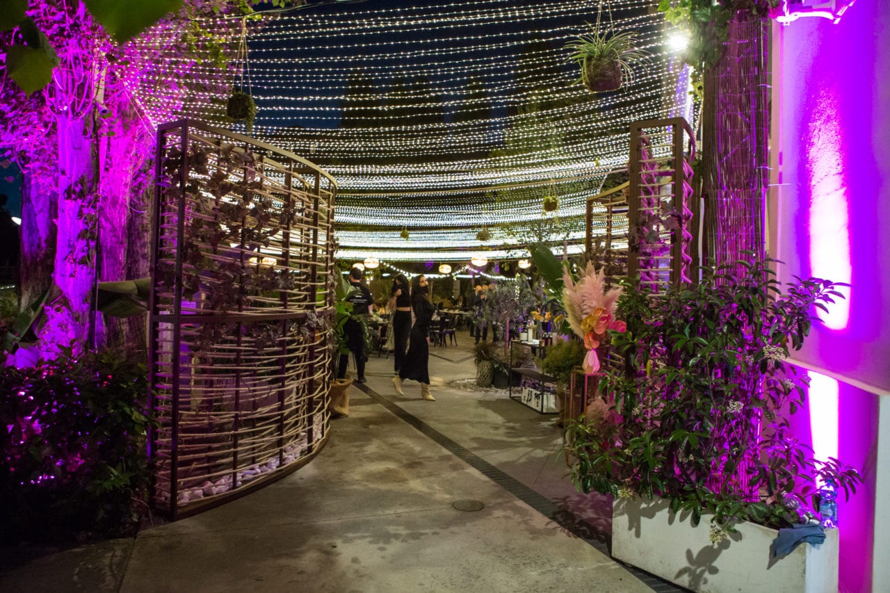 Lo spazio, infatti, curato dallo studio di architettura Project On, si accende di atmosfera con un reticolato di luminarie pronto a ricreare un magico cielo stellato. Mentre delle corde naturali, dei filari di edera e dei lampadari sospesi conferiscono alla location un tocco tropical. Tra complementi d’arredo in marmo, acciaio e legno di recupero, il locale sfoggia poi la grande protagonista della stagione estiva: la consolle, regina dei live set dal martedì alla domenica. La consolle è ingabbiata nell’iconica homi di bambù lanciata un anno fa come allestimento ecochic imprescindibile del ristorante open air.