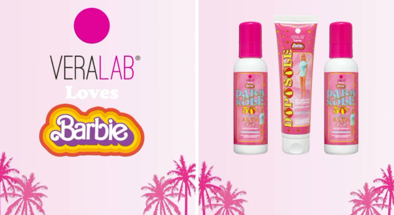 Quello che colpisce subito di questa capsule collection è il colore rosa shocking tipico di Barbie unito però al colore di Veralab (a sua volta rosa). Perfetta per un’estate all’insegna della spiaggia, Veralab Loves Barbie è composta da parasole 30 e 50 adatto a pelli sensibili e resistenti all’acqua. In più un doposole calmante lenitivo e anti rossore con oli emollienti naturali. A completare la nuova collezione di Veralab è una mini bag per la spiaggia, regalata in omaggio a tutti coloro che acquistano l’intera linea.