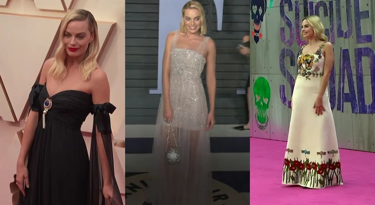 Nell’arco della sua carriera, Margot Robbie ha collezionato tantissimi momenti preziosi da red carpet. L’ultimo, già citato, è stato agli Oscar 2021 dove ha indossato un abito floreale di Chanel Haute Couture realizzato su misura ed ispirato alla collezione Autunno/Inverno 2019 della maison. All’afterparty degli Oscar 2018, ha indossato un abito argento di Chanel Couture abbinato ad una minibag cilindrica rivestita di paillettes. Sul red carpet dei SAG Awards 2018, ha indossato un abito total white di Miu Miu caratterizzato da una fascia ad altezza vita ricoperta di frange.