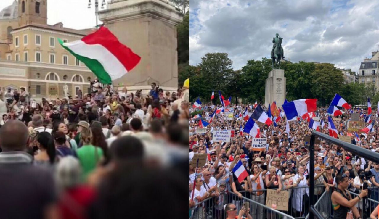 Raduni e cortei si sono inseriti nel solco di una mobilitazione internazionale, animata da collettivi chiamati World Wide Demonstration e World wide rally for freedom. Sabato 24 luglio sono scesi in piazza cittadini di diversi Paesi del mondo. In Francia, a Parigi, ci sono stati scontri tra dimostranti e polizia. A Strasburgo, Nantes, Lille e Bordeaux, sit-in pacifici contro i pass sanitari. Secondo il ministero dell’Interno i partecipanti in tutto il paese sono stati 161mila. Violenti scontri anche in Grecia, ad Atene. I poliziotti hanno usato i lacrimogeni e i cannoni ad acqua per disperdere le persone, almeno 4mila, che si erano radunate nel centro della capitale greca per opporsi alle vaccinazioni obbligatorie di alcuni lavoratori come il personale sanitario e infermieristico. Alcuni manifestanti hanno lanciato molotov, la polizia ha risposto con i lacrimogeni. Migliaia di persone hanno manifestato anche nelle due più grandi città australiane: a Sydney la polizia ha eseguito diversi arresti dopo violenti scontri. A Melbourne, invece, i manifestanti hanno affollato le strade dopo essersi radunati davanti al Parlamento statale.