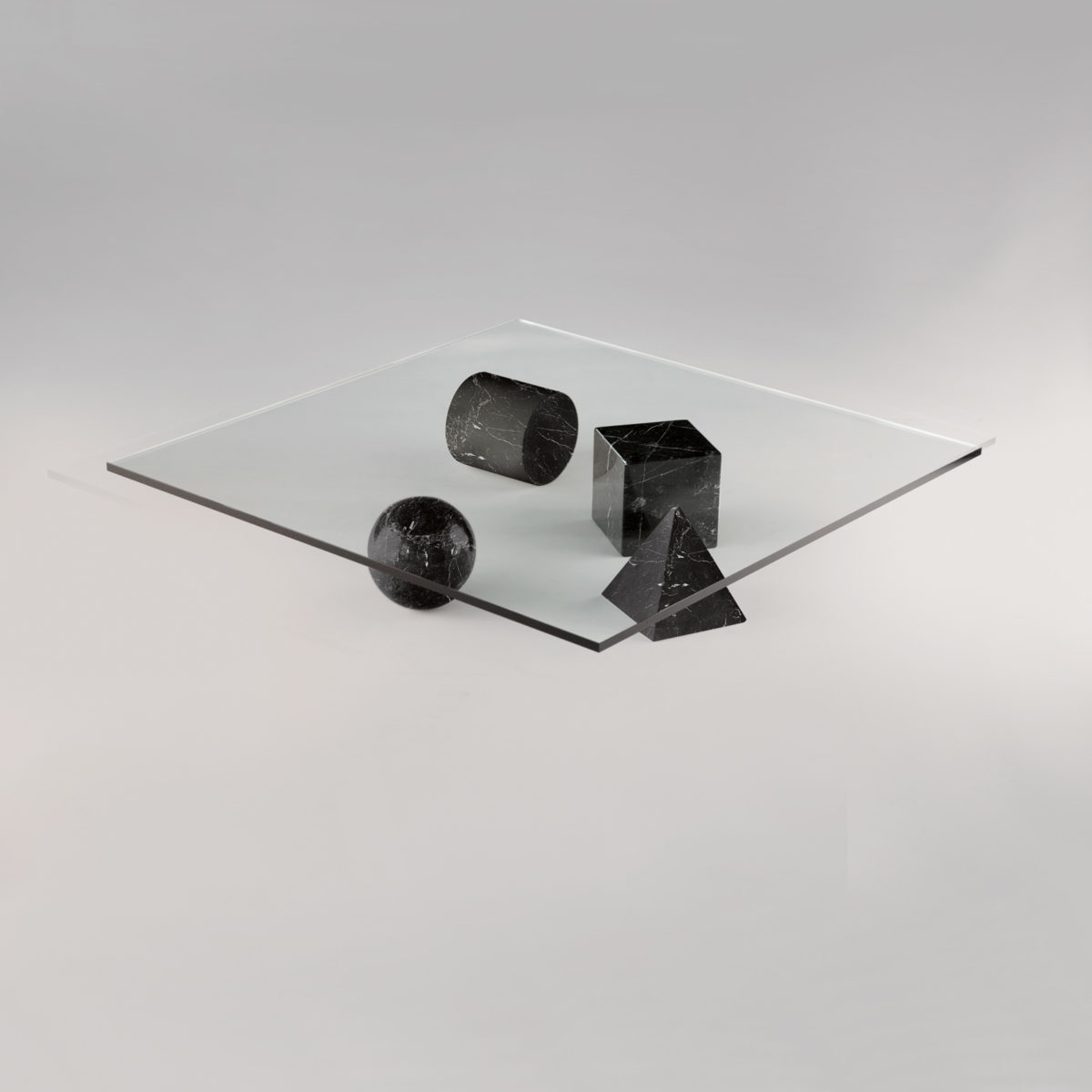 I Vignelli compiono una scelta cruciale: quella di lavorare sulle forme primarie, impiegando il marmo per costruire i supporti del tavolo, che sono un cubo, una sfera, un cilindro e una piramide. Le forme sono patrimonio ancestrale della memoria di tutti, per questa ragione l’oggetto di design è subito amato. I quattro solidi sono realizzati con un’unica qualità di marmo, che rende questo tavolo eterno. Non a caso il motto di Elena Valle, conosciuta più comunemente come Lella Vignelli, era: “Se lo fai correttamente, durerà per sempre“.