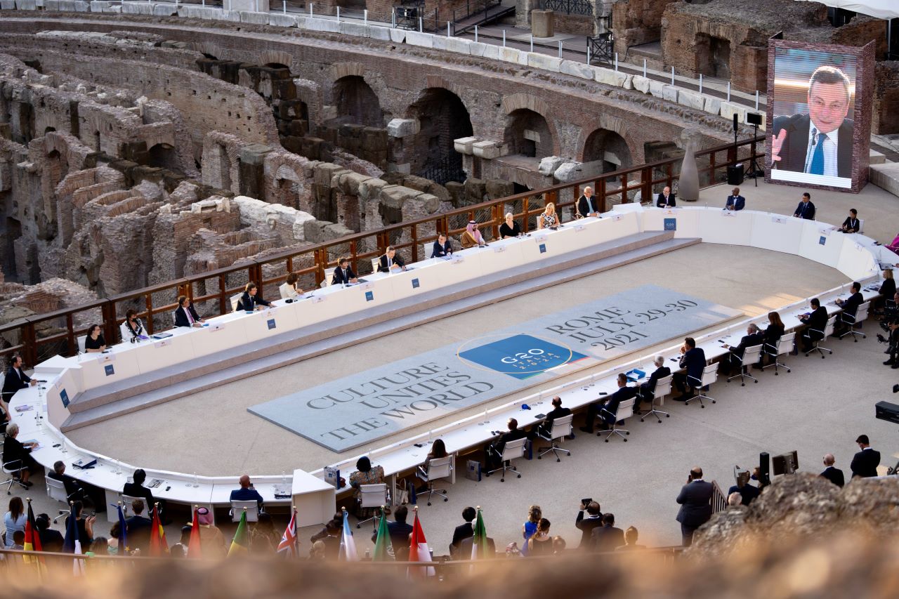 La tutela del patrimonio, ha poi sottolineato Draghi, “richiede anche maggiore sostenibilità ambientale. In Italia, più di dieci siti Patrimonio dell’Umanità sono in pericolo per l’innalzamento del livello del mare. Il rischio di alluvioni minaccia tra il 15 e il 20% dei beni culturali del nostro Paese. Dobbiamo agire subito, perché le generazioni di domani possano godere dei tesori che noi ammiriamo oggi“. Draghi ha citato lo stop al passaggio delle grandi navi a Venezia e le misure di sostegno alle categorie più colpite. Inoltre, nel suo intervento il premier ha citato il record di siti, 58, considerati patrimonio dell’Unesco: “Qualche giorno fa, scherzando con il ministro Franceschini, ho detto che sarebbe da considerare l’intero Paese come sito Unesco“. “Il nostro patrimonio culturale è il frutto dell’immaginazione dei nostri antenati – ha concluso – Quello dei nostri nipoti dipende da cosa sapremo fare noi. Questo G20 e la sua Dichiarazione finale mi rendono ottimista sulla nostra capacità di coniugare memoria e visione“.