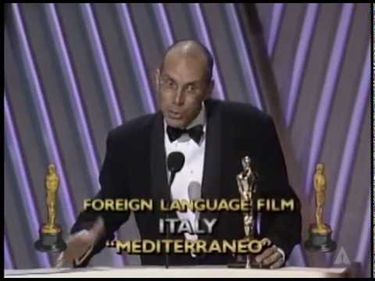 Billy Crystal che presentava Stallone era già metà dello spettacolo: “Per presentare il miglior film in lingua straniera, un uomo che nel 1976 ha scritto e recitato in un ‘piccolo’ film chiamato Rocky, che ha vinto il premio come miglior film e ha introdotto la parola ‘yo’ in tutte le lingue tranne l’ebraico, dove si legge da destra a sinistra”. Allora Stallone entrava sulle note (ovviamente) di Gonna Fly Now, e spendeva parole che, col senno del poi, potevano essere riservate solo a Mediterraneo (nonostante fossero tutti convinti, anche Salvatores, che avrebbe vinto Lanterne rosse di Zhang Yimou.