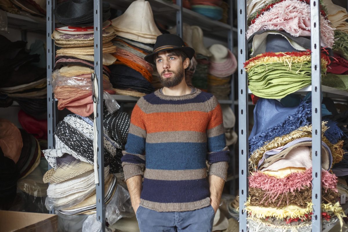 Ecco quindi che si passa alla fase della tintura, la seconda fase imprescindibile della realizzazione del cappello. “Prepariamo il tessuto, lo lavoriamo anche utilizzando delle tinture specializzate. Ci avvaliamo dello stone-washing, una vera e propria centrifuga fatta a elevata velocità che racchiude delle pietre all’interno. Ciò dà all’accessorio un risultato originale e al contempo, stinto, vissuto.”- continua Mattia Antinori-: “Una volta eseguito questo passaggio l’articolo va in lavorazione. Ed è in questa fase che il tessuto subirà il taglio, viene infatti scelto il cartamodello su cui lavorare e si preparano i pezzi di assembramento del cappello. In Complit siamo specializzati proprio nei copricapi strutturati. I cappelli che hanno una struttura fissa, formata, che possono essere in sisal, paglia, carta, lana cotta.”
