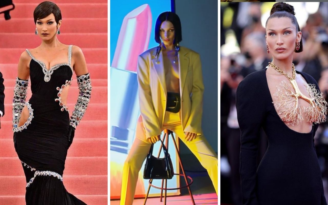 Ed è sempre a Cannes, ma cinque anni dopo, che la top model ha stupito con una creazione di Schiaparelli. Ha indossato un cut out dress total black che lascia la scollatura totalmente esposta, ma coperta da una collana-scultura in oro di Roseberry. Un altro completo audace è quello indossato ai VMA Awards 2020, un look dalle vibes anni ’90 composto da blusa trasparente in chiffon e pantaloni neri di Nensi Dojaka. Al Victoria’s Secret Fashion Show del 2018, ha optato per un abito d’argento dalla scollatura voluminosa di Julien Macdonald. Alla cena di gala in Francia, nel 2018, la top model ha optato per un abito vintage rosa senza spalline di Jean Paul Gaultier. All’evento organizzato da Chopard quest’estate, Bella Hadid ha scelto un minidress black&white di Lanvin.