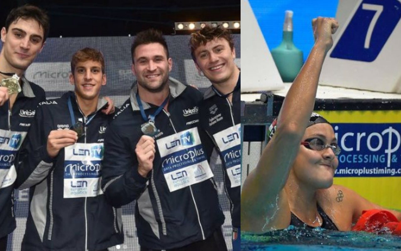 Due ori – uno con record del mondo – i primi della spedizione azzurra negli Europei di nuoto in vasca corta in corso a Kazan, e tre argenti. E’ il bottino di giornata dell’Italnuoto azzurra nella seconda giornata di gare. Si laureano campioni continentali Martina Carraro, una conferma nei 100 rana col personale di 1’04″01, e la 4×50 mista con tanto di record mondiale -1’30”14 – di Michele Lamberti (dorso), Nicolò Martinenghi (rana), Marco Orsi (delfino) e Lorenzo Zazzeri (stile libero).