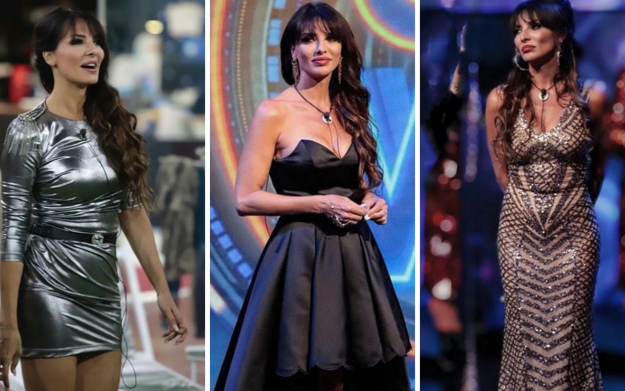 Tra i più glamour figura l’abito bianco in pizzo con ricami floreali senza spalline di Fabrizio Crispino, abbinato a decolleté in argento di Queen Helena. Molto affezionata a MissMax Couture, la Trevisan ha indossato più volte i loro capi d’abbigliamento: elegante è l’abito con gonna plissé che gioca con le linee oblique rosse, bianche e nere e corpetto rigido con scollatura a cuore senza spalline. Dello stesso brand è l’abito color petrolio rivestito di glitter, così come il minidress total black con maniche in tulle e pois in rilievo. Miriana Trevisan sfoggia look glamour anche comfy e da tutti i giorni, come ad esempio la maxi camicia in denim di J-Cube con cuissard di Queen Helena.