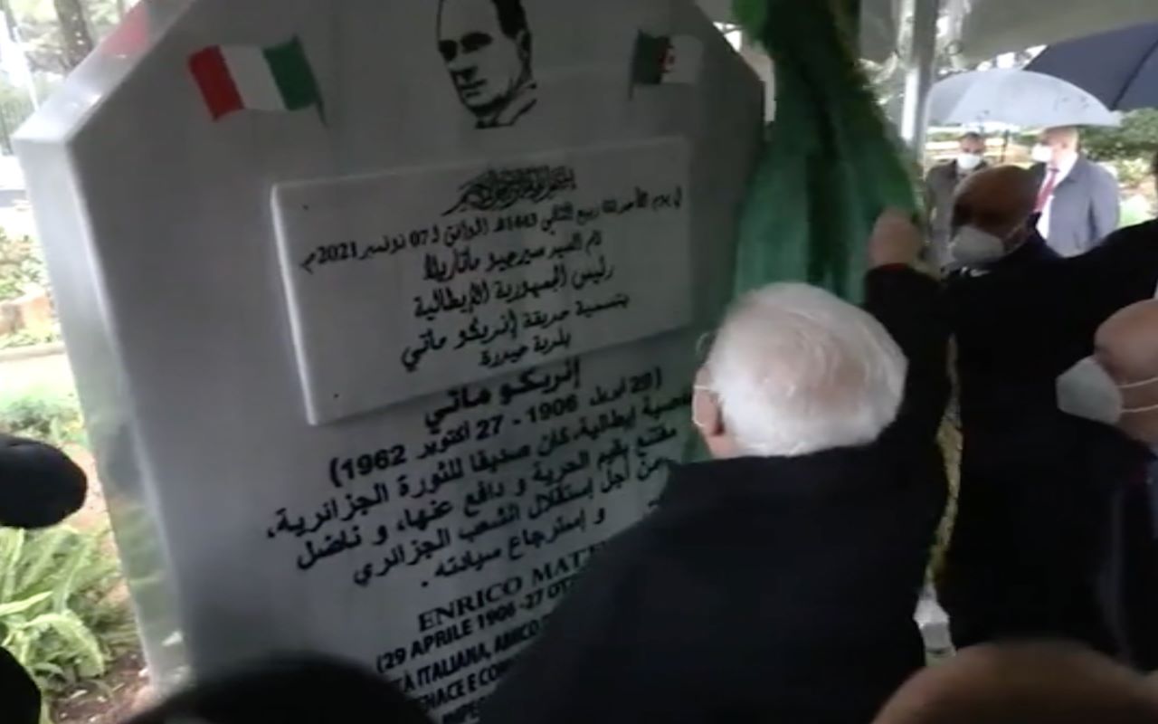 Il Capo dello Stato è in Algeria per una visita di Stato. Sulla targa appare in alto l’immagine incisa del volto di Enrico Mattei, con le bandiere algerina e italiana. In basso una scritta in arabo, con la traduzione in italiano. “Personalità italiana – si legge nell’epigrafe – amico della rivoluzione algerina, difensore tenace e convinto della libertà e dei valori democratici, impegnato a favore dell’indipendenza del popolo algerino e del compimento della sua sovranità“.