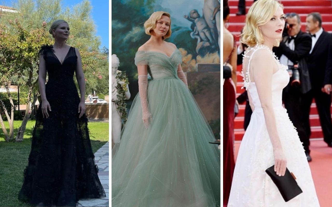Ai Golden Globe Kirsten Dunst ha sfoggiato un delicato abito rosa confetto di Rodarte, brand con il quale ha instaurato una lunga collaborazione. Anche per la cerimonia di InStyle nel 2019 ha indossato un abito dal brand, fatto di strati di arcobaleni rifiniti in tulle. Tocco di classe il maxi fiocco di seta ad altezza vita. Per la prima di The Irishman al New York Film Festival del 2019, l’attrice ha optato per un abito in raso di The Vampire’s Wife. Agli Emmy Awards 2018 ha portato sul tappeto rosso un abito blu cobalto di Schiaparelli Haute Couture, mentre sul tappeto rosso della Mostra del cinema di Venezia 2017 ha indossato un abito di Rodarte rosa antico con pois neri.