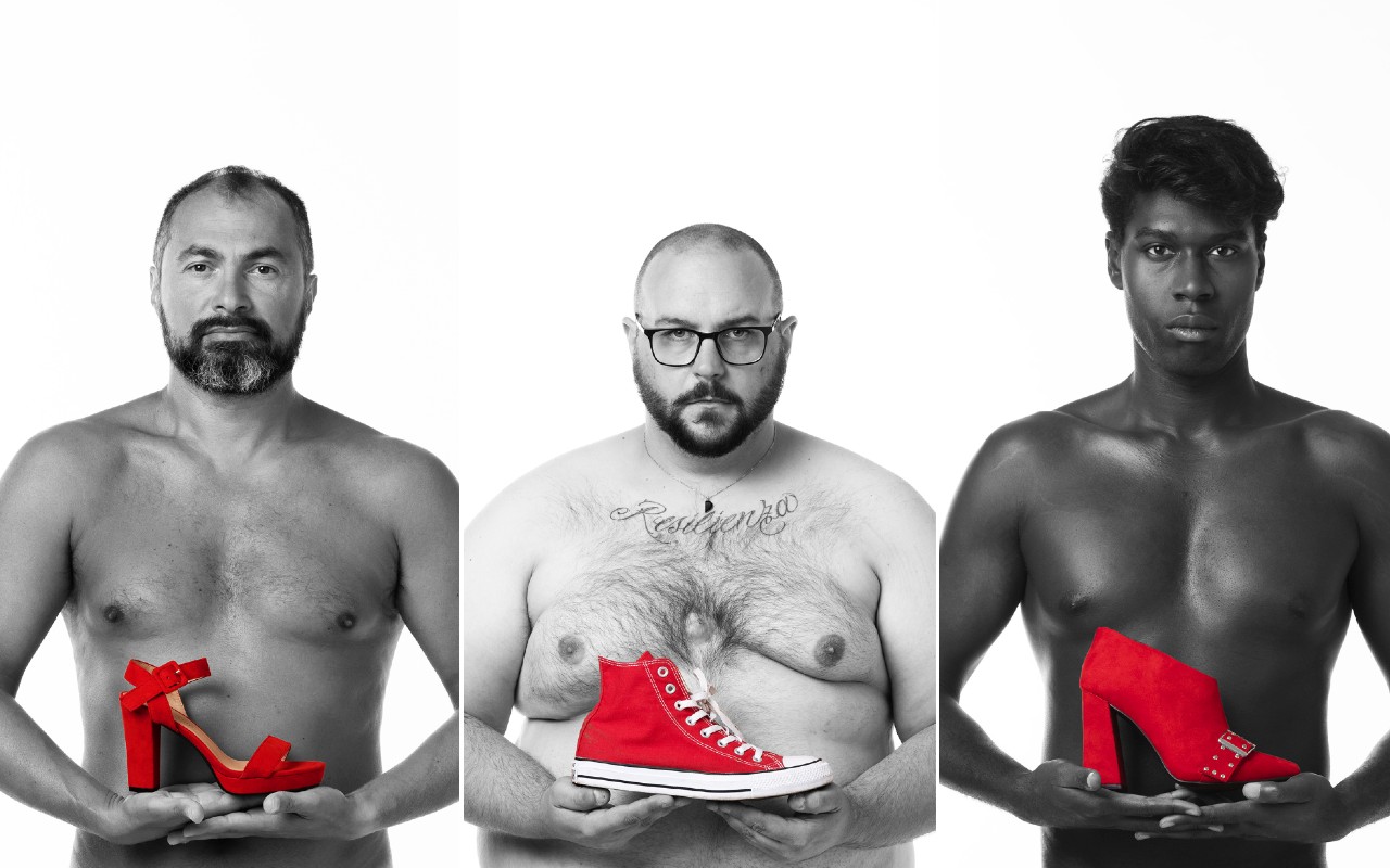 Dal forte impatto i soggetti ritratti nelle fotografie che compongono #30paroleimportantipernoi; scatti in bianco e nero distribuiti in modo da creare una sorta di labirinto, all’interno del quale muoversi per osservare ed essere osservati dagli sguardi presenti nelle immagini. Si tratta di trenta uomini spogliati letteralmente e simbolo di un messaggio di uguaglianza e vicinanza verso tutte le compagne, mogli, madri, sorelle e figlie; ogni soggetto ritratto tiene in mano l’unica nota di colore dello scatto: una scarpa rossa, simbolo universale della violenza contro le donne.