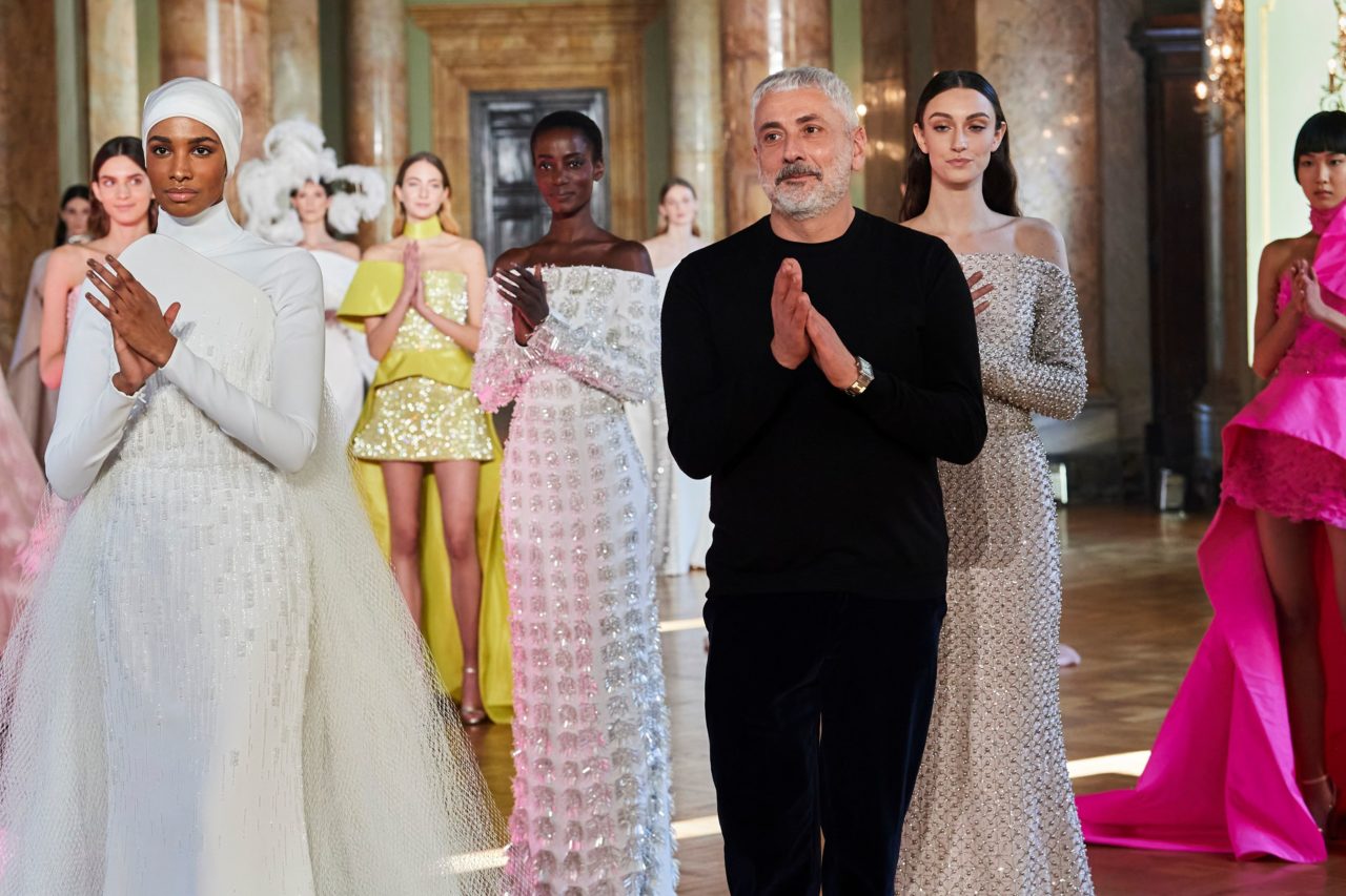 La dimora patrizia romana di età barocca conserva inalterata il fascino e la suggestione principesca della residenza nobiliare più vasta della Capitale. La residenza ospitò nel 1400 il principe Giordano Colonna, fratello di Oddone, nominato Papa, come il celebre Martino V. “Sono rimasto colpito da Palazzo Colonna ed ho utilizzato per la sfilata la luce naturale del giorno, ambientando proprio per questo l’evento nelle prime ore del mattino”.- dichiara in esclusiva a VelvetMAG il designer: “Ho immaginato una tenuta estiva, dove puoi trasferirti nella bella stagione per godere dei raggi solari. La scelta di Palazzo Colonna mira ad essere un contrasto voluto con il set della precedente collezione, il moderno Palazzo delle Esposizioni. Non immaginavo però una dimora lussuosa, bensì una cornice neutra negli arredi, proprio come questa. La ricchezza l’ho espressa negli abiti, dando risalto allo spazio, al colore della couture”.