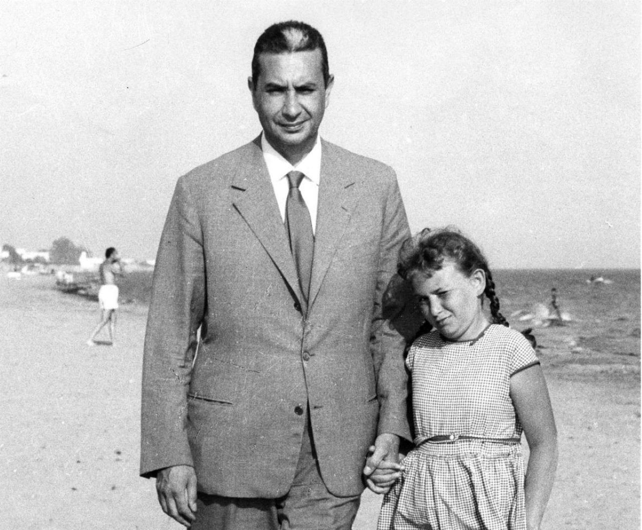 Aldo Moro nel 1961 al mare di Terracina (Latina) con la figlia Agnese