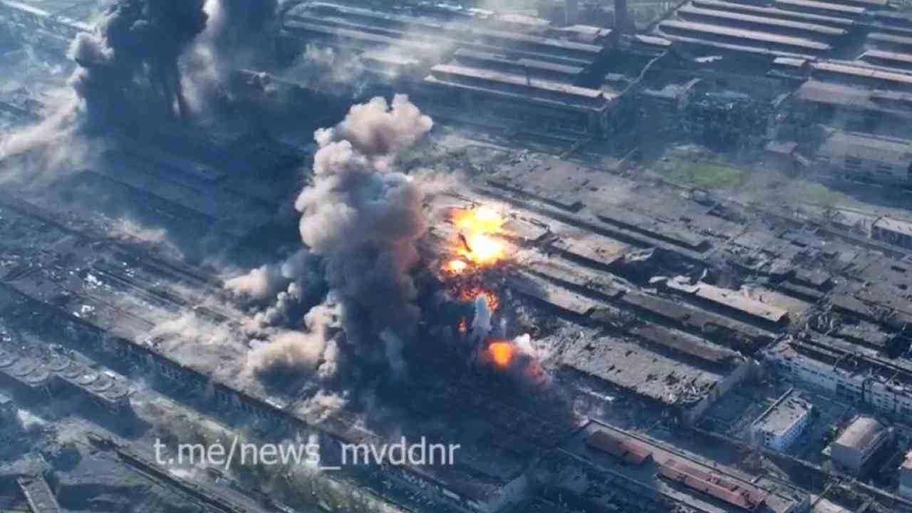 L'attacco all'acciaieria di Mariupol diffuso dal canale Telegram del Ministero dell'Interno della Repubblica popolare di Donetsk. MINISTERO DELL'INTERNO DELLA REPUBBLICA POPOLARE DI DONETSK