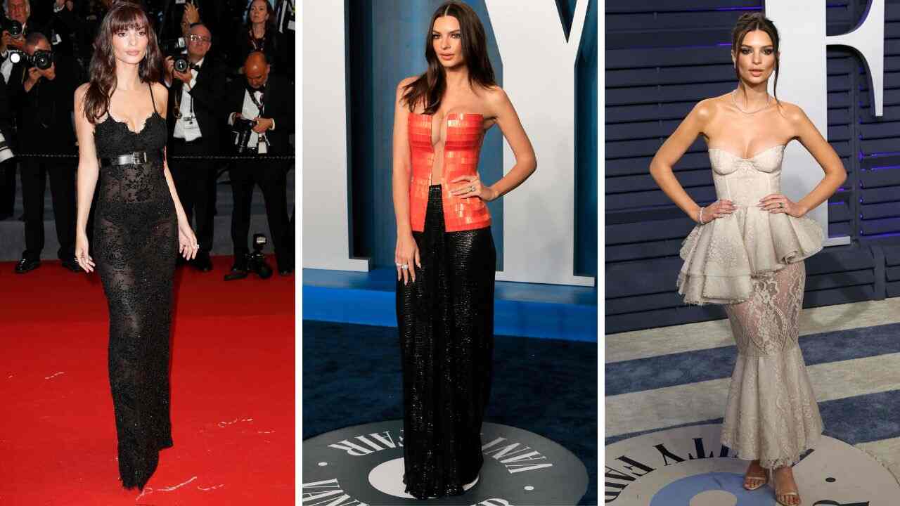 Emily Ratajkowski è abituata alle luci della ribalta ed è forse per questo che non perde l’occasione di calcare un tappeto rosso. Il più recente è quello del Festival di Cannes. La modella è spesso presente in Costa Azzurra e, per l’edizione 2022 della Croisette, ha incantato il red carpet con un abito total black in stile vedo-non-vedo con ricami in pizzo di Miu Miu. Poco tempo prima, al Met Gala 2022, ha proposto una creazione vintage di Versace, un abito d’archivio del 1992 coloratissimo con bustier rigido ricoperto da foglie barocche e pietre preziose. La gonna gioca con tagli asimmetrici e stampa floreale, arricchita da tulle in oro e frange.
