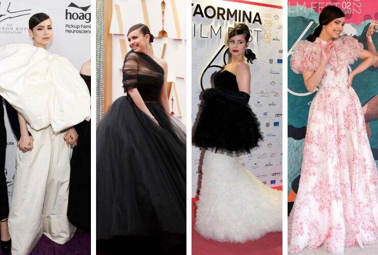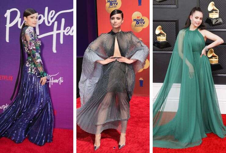 Nonostante sia giovanissima – classe 1993 – finora Sofia Carson ha partecipato a tantissimi red carpet. L’ultimo riguarda la première di Purple Hearts di Netflix. Per l’occasione, l’attrice ha indossato un abito rigorosamente viola, della sfumatura Veri Pery Pantone, con gonna plissé effetto metallico e corpetto in chiffon trasparente ravvivato da ricami floreali in rilievo. La creazione porta la firma di Elie Saab. Agli MTV Movie & TV Awards 2022, ha indossato un abito black&white effetto ottico, con maniche ampie e profondo scollo di Iris Van Herpen Haute Couture.