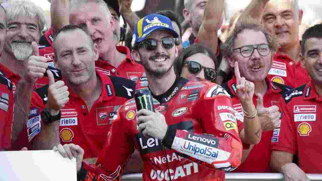Il traguardo della Ducati è stato reso possibile dalle 10 vittorie ottenute dai rider Ducati. 4 le vittorie consecutive del ‘Pecco‘ che, a partire dal Gran Premio di Olanda, ha continuato ad aggiungere successi su successi. Podio che Bagnaia ha ottenuto, seppur in seconda piazza, anche nel GP di Aragón. A interrompere la catena di vittorie il ‘compagno’ Enea Bastianini, resosi protagonista di un sorpasso ai danni di ‘Pecco‘ a pochi giri dalla conclusione.