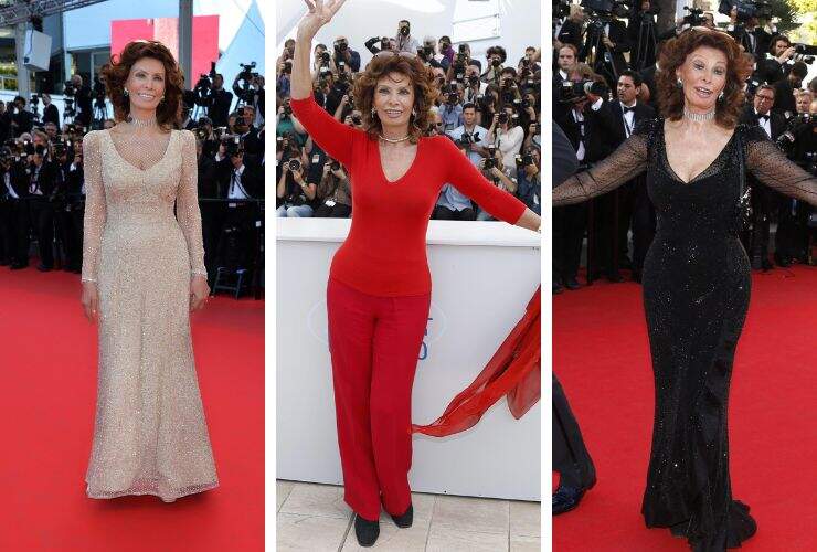 Tanti red carpet hanno ospitato la bellezza dirompente di Sophia Loren. L’attrice ha più volte animato il Festival di Cannes con la sua presenza: la più recente risale al 2014. Per l’occasione, ha posato per il photocall indossando un completo total red semplicissimo a cui ha abbinato un foulard ton sur ton. Sul tappeto rosso, invece, ha proposto un long dress champagne completamente rivestito di micro paillettes, accompagnato da orecchini di smeraldi.