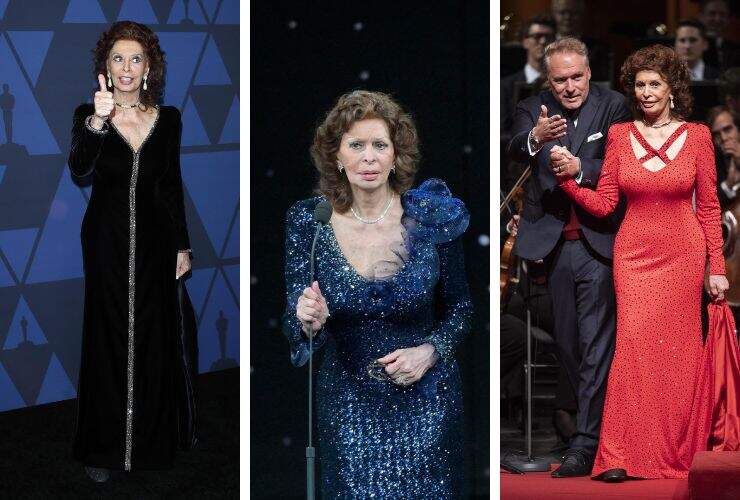 Agli European Cultural Award 2019, la diva del cinema nostrano ha presenziato indossando un’elegante creazione total red rivestita di micro punti luce e scollo intrecciato. Quell’anno ha partecipato anche all’appuntamento annuale con i Governors Awards e, sul tappeto rosso, ha sfoggiato un long dress in velluto nero ravvivato da una lingua d’argento che attraversa l’abito in tutta la sua lunghezza. E che dire, invece, dei David di Donatello 2021? In quell’occasione, Sophia Loren ha raggiunto il palcoscenico per ritirare il premio come migliore attrice protagonista del film La vita davanti a sé. Estremamente commossa, ha ritirato il premio indossando un abito blu notte rivestito di rouches e paillettes.