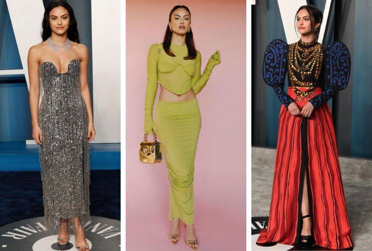 Nonostante sia un giovane talento del piccolo schermo, Camila Mendes non ha mai perso l’occasione di calcare un red carpet soprattutto perché è una fashion addicted. In occasione della première di Do Revenge a Los Angeles, ha sfilato sul red carpet di Netflix indossando un completo total green di Versace, con corpetto scolpito e gonna a vita bassa della collezione Autunno/Inverno 2022 della maison. A completare il look anche sandali e gioielli di Versace. Ai Vanity Fair Oscar Party del 2022, l’attrice di Riverdale ha proposto un midi scintillante, in argento e completamente rivestito di frange e paillettes di Carolina Herrera. In aggiunta ha sfoggiato sandali di Roger Vivier e gioielli di Messika.