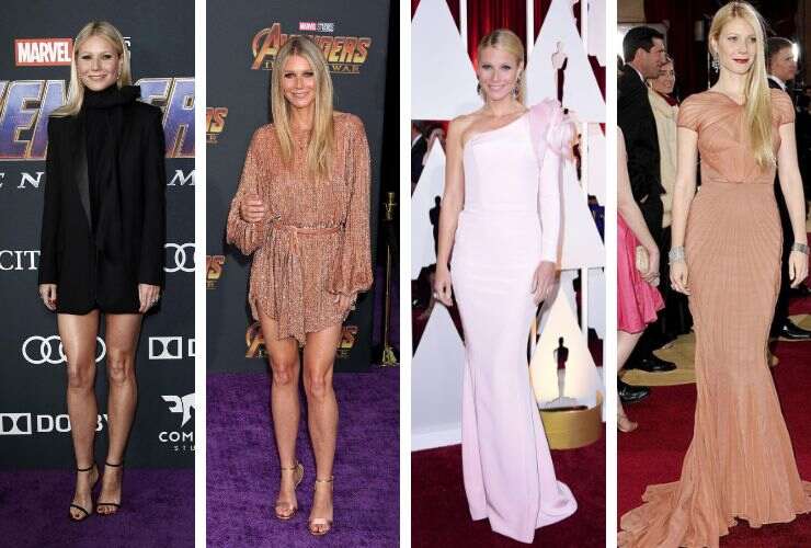 All’ultima première cinematografica per Avengers: Endgame nel 2019, ha proposto un minidress in raso accompagnato da blazer di G Label by Goop. L’anno precedente, alle première di Avengers: Infinity War di Los Angeles, ha calcato il red carpet con un minidress pesca rivestito di paillettes di Retrofete. Agli Oscar 2015, Gwyneth Paltrow ha proposto un abito rosa pastello monospalla con maxi fiore ad altezza spalla di Ralph & Russo. Allo stesso evento, ma nel 2007, ha sfoggiato un abito plissè di Zac Posen.