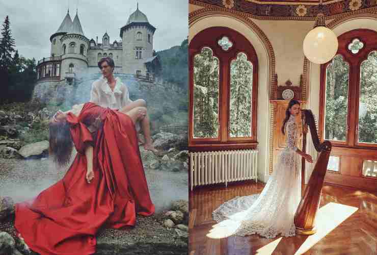 Assolutamente, desideravo una residenza da fiaba, ma anche misteriosa al contempo. Castello Savoia, a Gressoney fu realizzato per volere della Regina Margherita di Savoia, che soggiornava qui ospite dei baroni Beck Peccoz già dal 1889. I castelli italiani sono tutti medioevali, volendo però ambientare una favola moderna desideravo una residenza più gotica per allacciarmi al tema dei vampiri. Gli scatti sono di Alessio Albi, un giovane fotografo talentuoso del gruppo Conde Nast. Ho scelto una modella ucraina, anche se ora è di base negli Stati Uniti, per lanciare un messaggio di solidarietà.