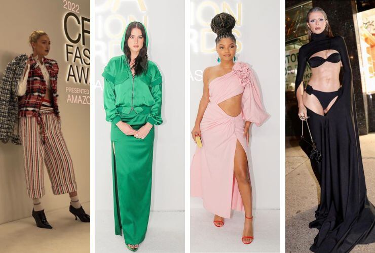 Grace Van Patten ha optato per un completo sporty chic verde smeraldo in velluto realizzato da Tom Ford, a cui ha abbinato décolleté con platform ton sur ton. Halle Bailey ha raccolto i capelli in uno chignon scenico e ha indossato un abito cut out rosa pastello con dettagli drappeggiati di Carolina Herrera. Julia Fox non si smentisce e, anche sul red carpet dei CFDA Awards 2022, ha proposto un look total black di Valerievi.