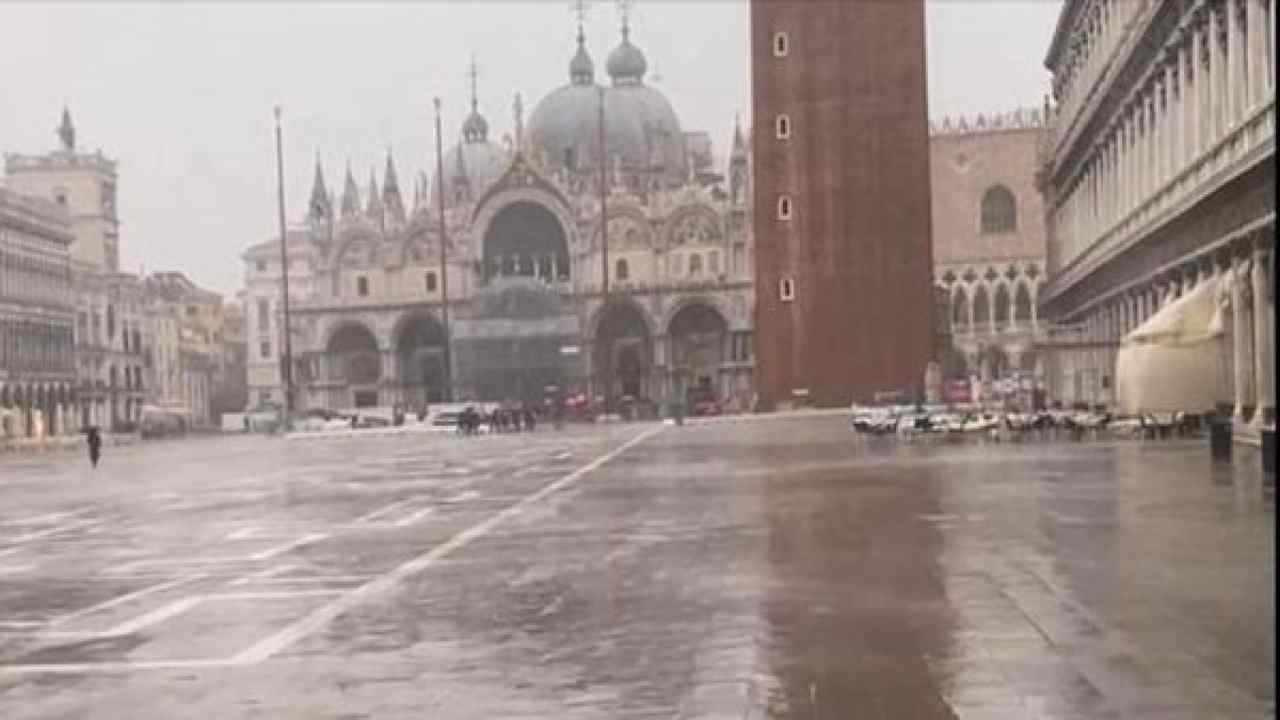 Piazza San Marco questa mattina pochi minuti dopo il picco di marea.