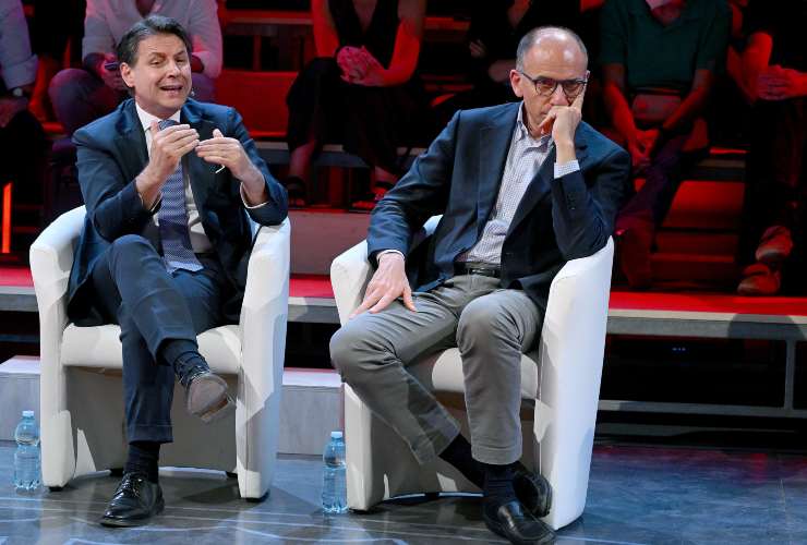 Da sin., Giuseppe Conte ed Enrico Letta Foto Ansa/Ettore Ferrari