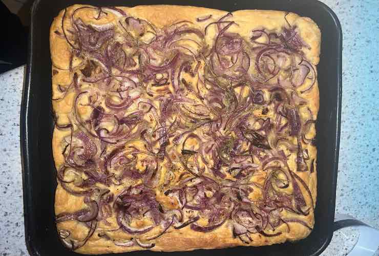 Avete delle cipolle rosse in frigo e non sapete più come utilizzarle? La focaccia alle cipolle è proprio la ricetta che stavate cercando! Semplice, morbida e golosa è ottima da mangiare come antipasto accompagnata da ottimi salumi e formaggi. Ma non disdegna anche il ruolo di merenda salata.