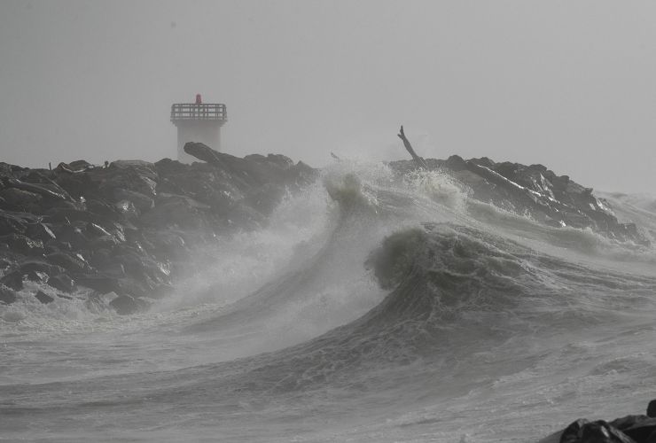 Mareggiata all’Idroscalo di Ostia il 22 novembre 2022. Foto Ansa/Emanuele Valeri