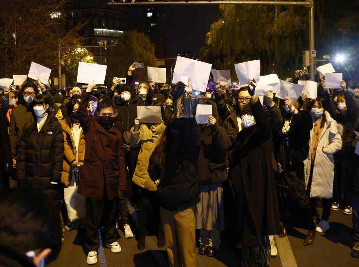 Una protesta in Cina alla fine di novembre contro la politica ‘zero-Covid’ del Governo. Foto Ansa/Epa Mark R. Cristino