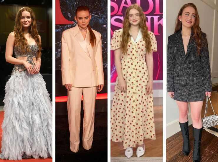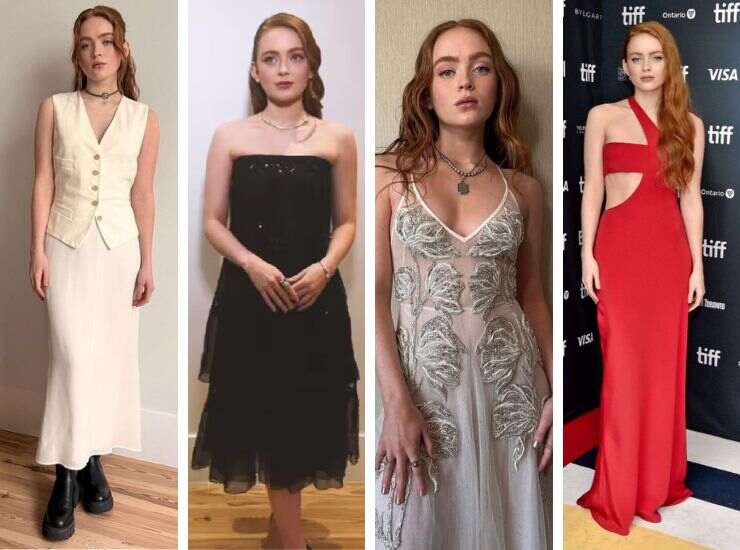 Alla première newyorkese di The Whale, Sadie Sink ha indossato un midi total black senza spalline, con gonna a balze in tulle ravvivata da decorazioni geometriche di Chanel. Della maison è anche il set di gioielli che accompagna il look. Sul red carpet dei Governors Awards del 2022, l’attrice di Stranger Things ha diviso la scena con grandi icone fashion come Cate Blanchett. Sul tappeto rosso ha proposto un altro midi ma questa volta total white con decorazioni floreali in rilievo d’argento e gonna in tulle di Alexander McQueen. A completare il look gioielli di Fred Leighton e décolleté di Alexander McQueen. Al Toronto Film Festival 2022, ha indossato un cut out dress total red di Stella McCartney a cui ha abbinato gioielli di Fred Leighton.