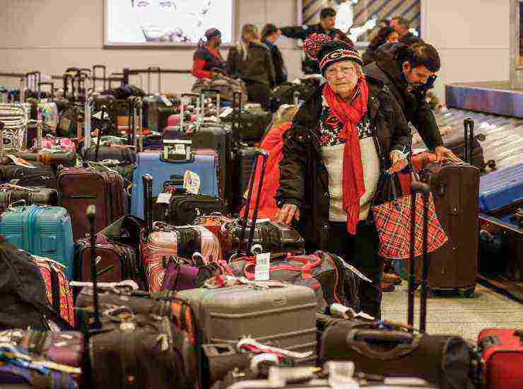 Passeggeri all’aeroporto di Midway bloccati da cancellazioni e ritardi dei voli, il 27 dicembre nell’Illinois. Foto Ansa/Epa Tannen Maury