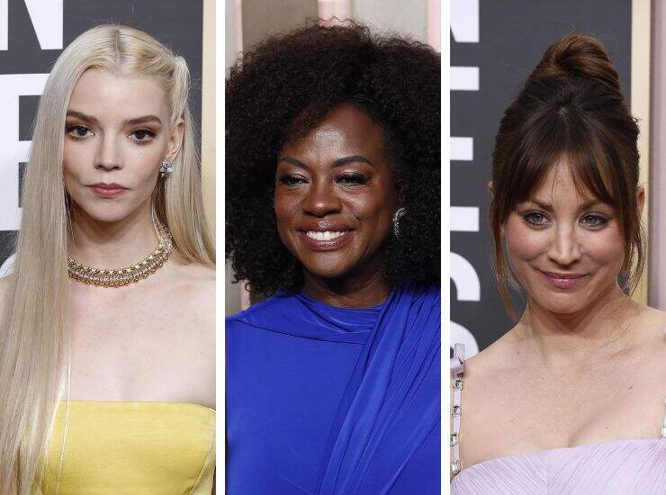 Anya Taylor-Joy non si smentisce e propone il suo iconico taglio lungo biondo platino rigorosamente liscio. Con riga centrale e clip laterale che accompagna un ciuffo, l’attrice di The Menu ha scelto un make-up sobrio sfumatura pesca con spolvera di blush sugli zigomi. Tendente al rosa è il make-up di Kaley Cuoco. L’attrice ha proposto un raccolto alto che esalta la frangia a tendina. Sul viso, invece, brilla lo smokey eye dei toni del lilla.