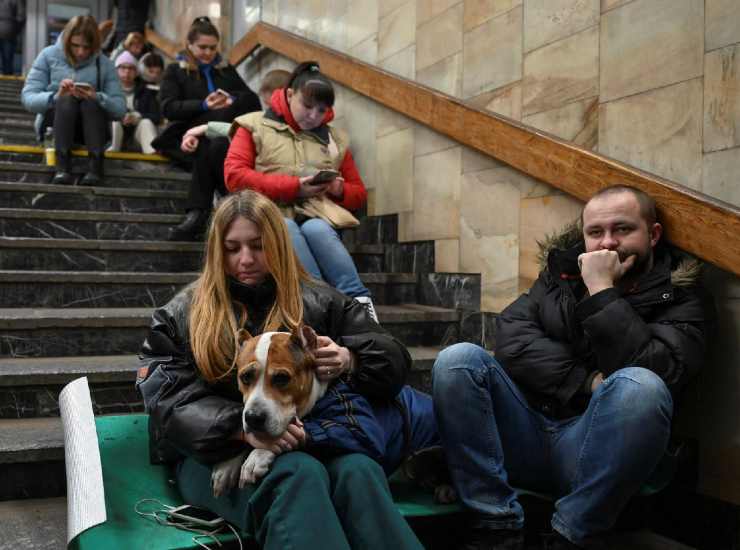 Persone rifugiate nella metropolitana di Kiev durante l’attacco missilistico russo del 26 gennaio 2023. Foto Twitter @MarcoFattorini