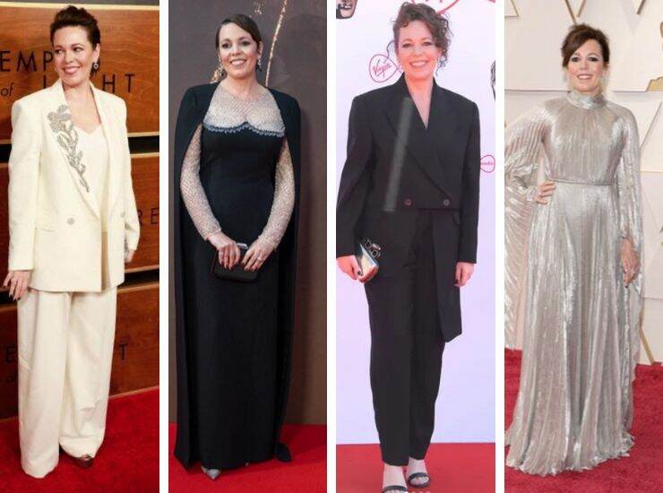 Sul red carpet dei BAFTA 2022, Olivia Colman ha sfoggiato un altro tailleur total black di Alexander McQueen, a cui ha abbinato clutch metallica e gioielli Chopard. Completamente argentato è l’abito plissé con maniche ampie e collo alto indossato agli Oscar 2022. Sul red carpet degli Academy Awards, ha proposto una creazione di Dior Haute Couture, abbinato a gioielli Chopard. Poco dopo, ai Vanity Fair Oscar Party, l’attrice di The Crown si è concessa un cambio look, proponendo un abito vinaccia di Dolce&Gabbana ravvivato da strass e paillettes in rilievo. In questo caso i gioielli sono di Smiling Rocks.