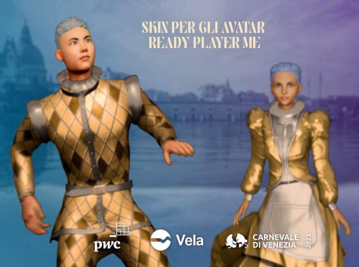 Le maschere di Arlecchino e Colombina, così come altre 4, sbarcano sul Metaverso. Foto Ufficio Stampa Comune di Venezia