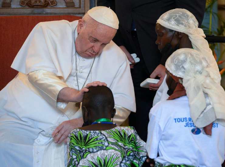 Il Pontefice ha incontrato alcune vittime di guerre e conflitti che insanguinano il Congo. Foto Twitter @VaticanNews