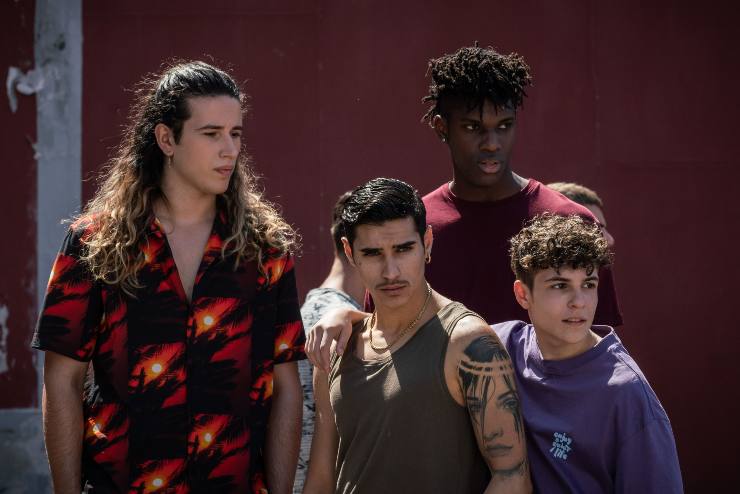Da sx. Francesco Panarella, Antonio D’Aquino, Salahduin Tijiani Imrana, Giuseppe Pirozzi in Mare Fuori 3 (Ph. Sabrina Cirillo) – VelvetMag