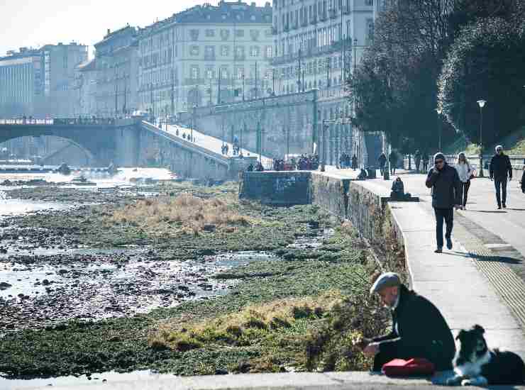 La portata del fiume Po a Torino è diminuita. Foto Ansa/Tino Romano
