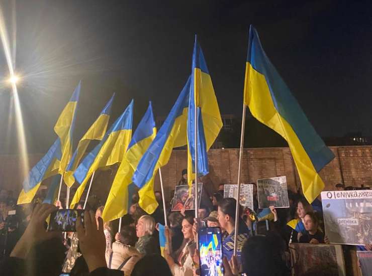 Manifestazione per l’Ucraina di fronte all’Ambasciata di Russia a Roma il 24 febbraio 2023 a un anno dall’invasione da parte delle truppe di Putin. Foto esclusive VelvetMag