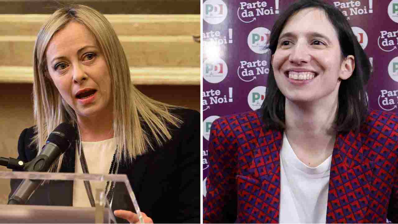 La premier Giorgia Meloni e la segretaria del PD, Elly Schlein. Foto Ansa/Maurizio Brambatti