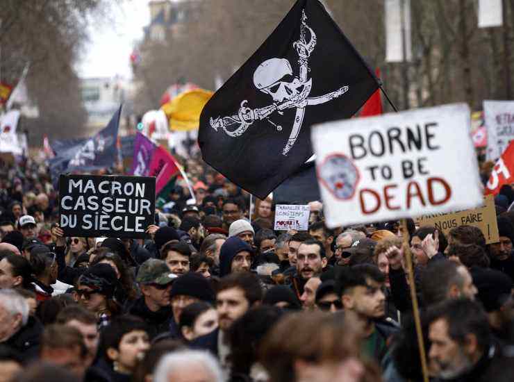 Ma le manifestazioni di protesta contro la riforma pensionistica di Macron non si fermano. Sarebbero almeno 142 le persone che la polizia ha fermato nella capitale il 20 marzo, a seguito della rabbia popolare esplosa in tutta la Francia dopo la notizia del ‘salvataggio’ del Governo dalle mozioni di censura. Secondo l’emittente Tf1 sono stati quasi 2mila gli agenti impegnati a mantenere l’ordine a Parigi. Nella stessa giornata del 20 marzo manifestazioni sono avvenute in molte città, fra cui Parigi, Strasburgo e Tolosa.