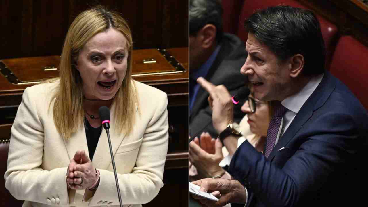 Giorgia Meloni e Giuseppe Conte. Foto Ansa