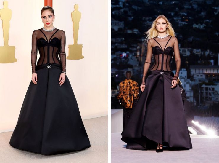Lady Gaga e Gigi Hadid hanno indossato lo stesso abito a distanza di pochi giorni l’una dall’altra. Mentre la prima ha colto l’occasione per rendere omaggio all’abito d’alta moda in occasione degli Oscar 2023, la seconda invece ha avuto l’opportunità di mostrarlo al mondo intero per la prima volta in passerella.
