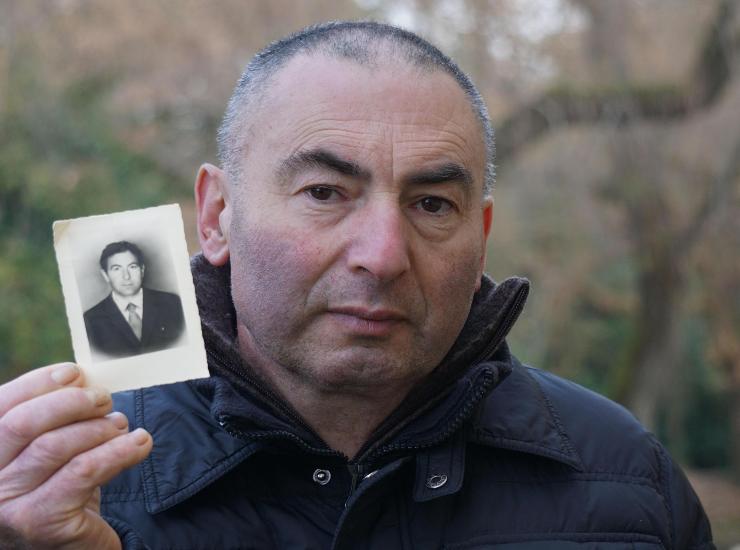 Adriano Sabbadin mostra una foto del padre Lino, ucciso dall’ex terrorista Cesare Battisti nel 1979. Foto Ansa/Andrea Merola