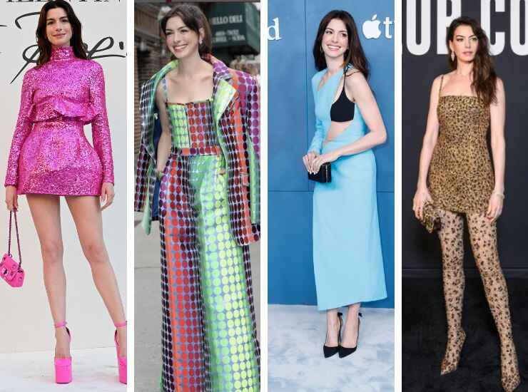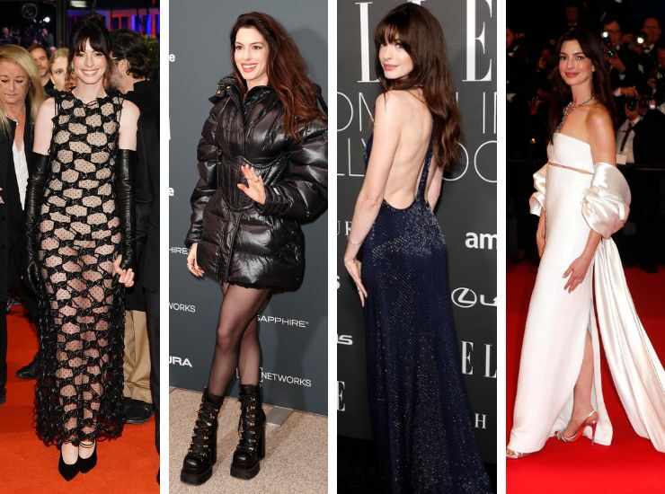 Recentissima l’apparizione al Berlin Film Festival per la première di She Came To Me. L’attrice, in questo caso, ha proposto un naked dress di Valentino Haute Couture rivestito da una trama intrecciata total black con pois e fiocchi, abbinata a guanti in pelle. A completare il look gioielli Bulgari. Al Sundance Film Festival 2023, invece, ha sfilato sul red carpet con un bomber total black abbinato ad un minidress della stessa tinta di Versace. A completare il look combat boots dell’Atelier. Blu notte è invece l’abito tempestato di glitter di Ralph Lauren indossato all’evento Elle Women in Hollywood 2022. Anne Hathaway è riapparsa anche al Festival di Cannes 2022 per la première di Armageddon Time. Sul red carpet, l’attrice ha indossato un abito total white senza spalline di Armani Privè. In aggiunta ha optato per uno zaffiro di Bulgari. Al photocall, invece, ha scelto un minidress blu di Gucci.